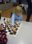 Grote zus Javeria was er ook voor het eerst, viel niet in de eerste prijzen, maar leverde met name in het begin van het toernooi prachtige partijen af. Meester Frank zag heel wat stellingen die zomaar uit het stap 1+ boek zouden kunnen komen. En dat hebben we nog helemaal niet gedaan. En dat ging allemaal goed…. Hoe kan dat nou? Het lijkt wel of ze al jaren bij de club is. We gaan allemaal nog veel plezier van ze hebben.