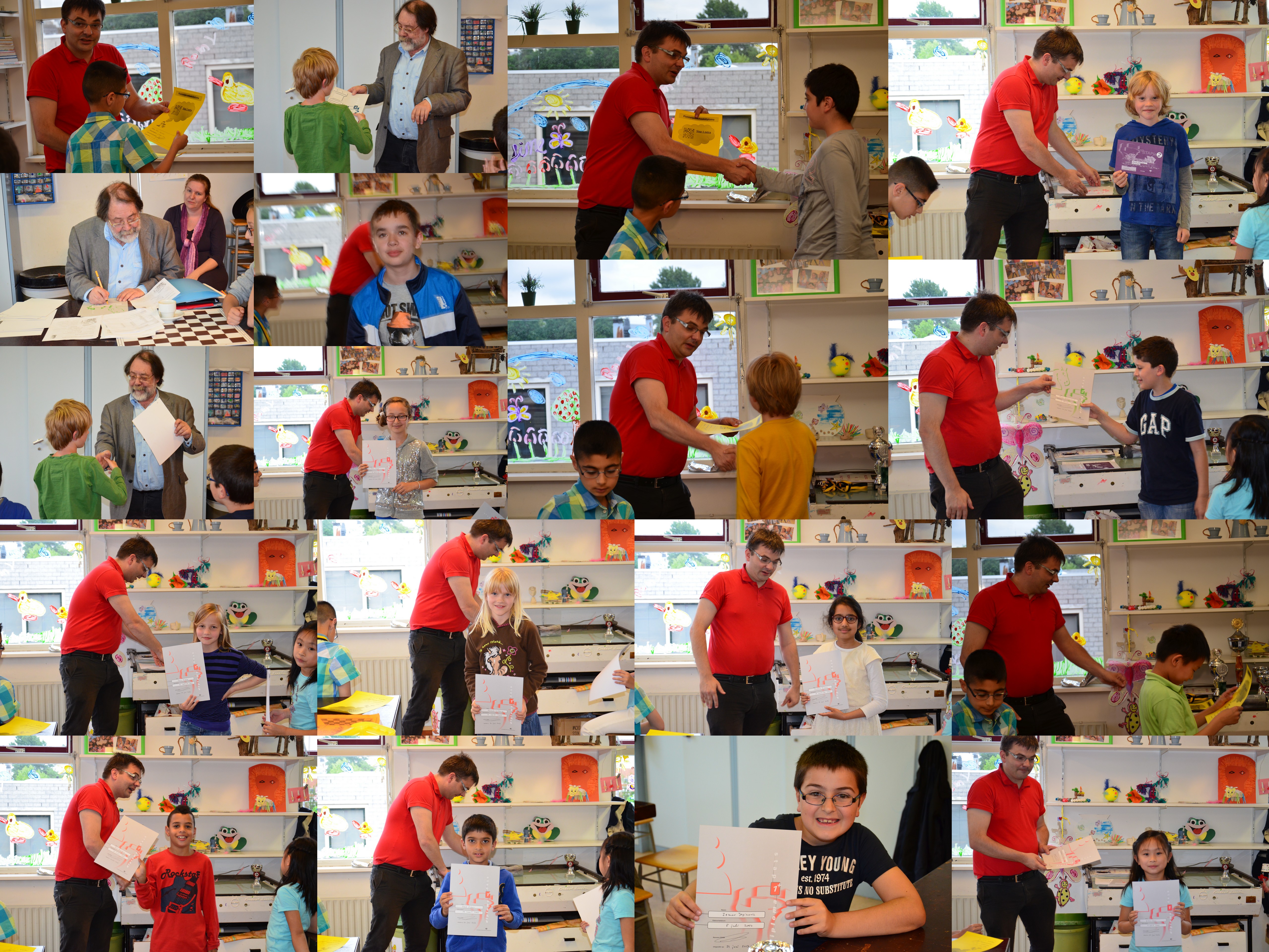 Ingeleid door mooie woorden van Dolf, werd het een waar diploma- en bekerspektakel. Het regende, bijna letterlijk, bekers, diploma’s en medailles. Hieronder in de vorm van vier fotocollages een indruk van deze speciale avond. Klik op de afbeeldingen voor een vergroting.