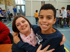 66-Sfeerplaatjes Onze Rock zit behoorlijk in de lift. Een week na zijn Grand Prix overwinning in Zoetermeer, wist hij tijdens het RSB scholierenschaaktoernooi kampioen te worden van groep 5. Als Schiedams Pionnetje de beste speler dus van een gebied dat zo groot is als de halve provincie. Hij deed dat ook nog eens met een score van 9 uit 9 en een toernooiratingprestatie van 1150. Waar gaat dat naar toe? We zijn allemaal supertrots op onze ‘toren’. De bijgeplaatste foto is van Ab Scheel die een neus heeft voor speciale momenten. Rock heeft net zijn laatste partij gewonnen en natuurlijk is het dan goed toeven bij moeder.05-Groep4