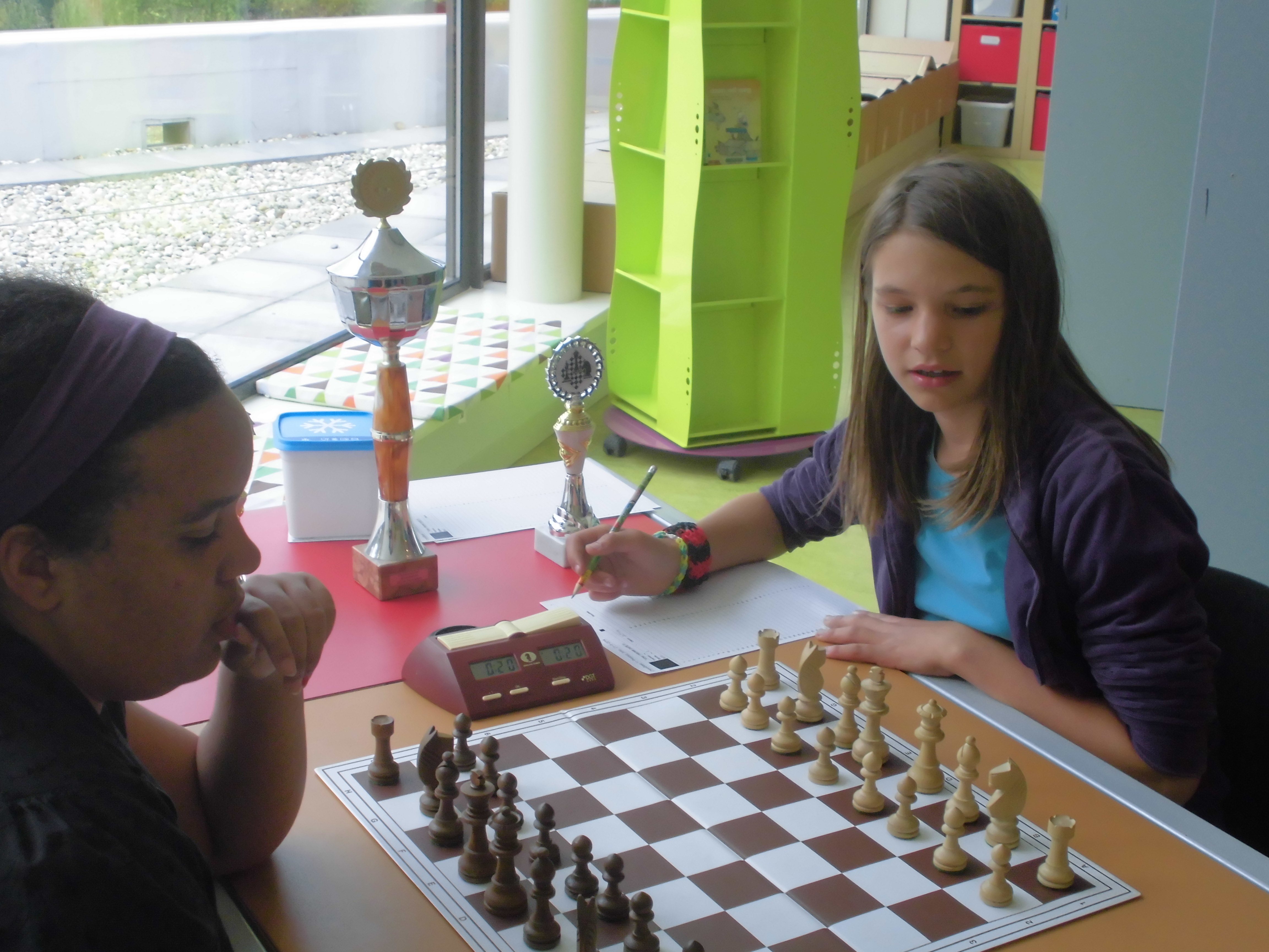 Faith en Kim hadden maar liefst vijf beslissingswedstrijden nodig, maar doordat Kim in de laatste bloedstollende partij net het meeste gezien had, mag zij zich komend half jaar Kampioen van de Pionnetjes noemen!