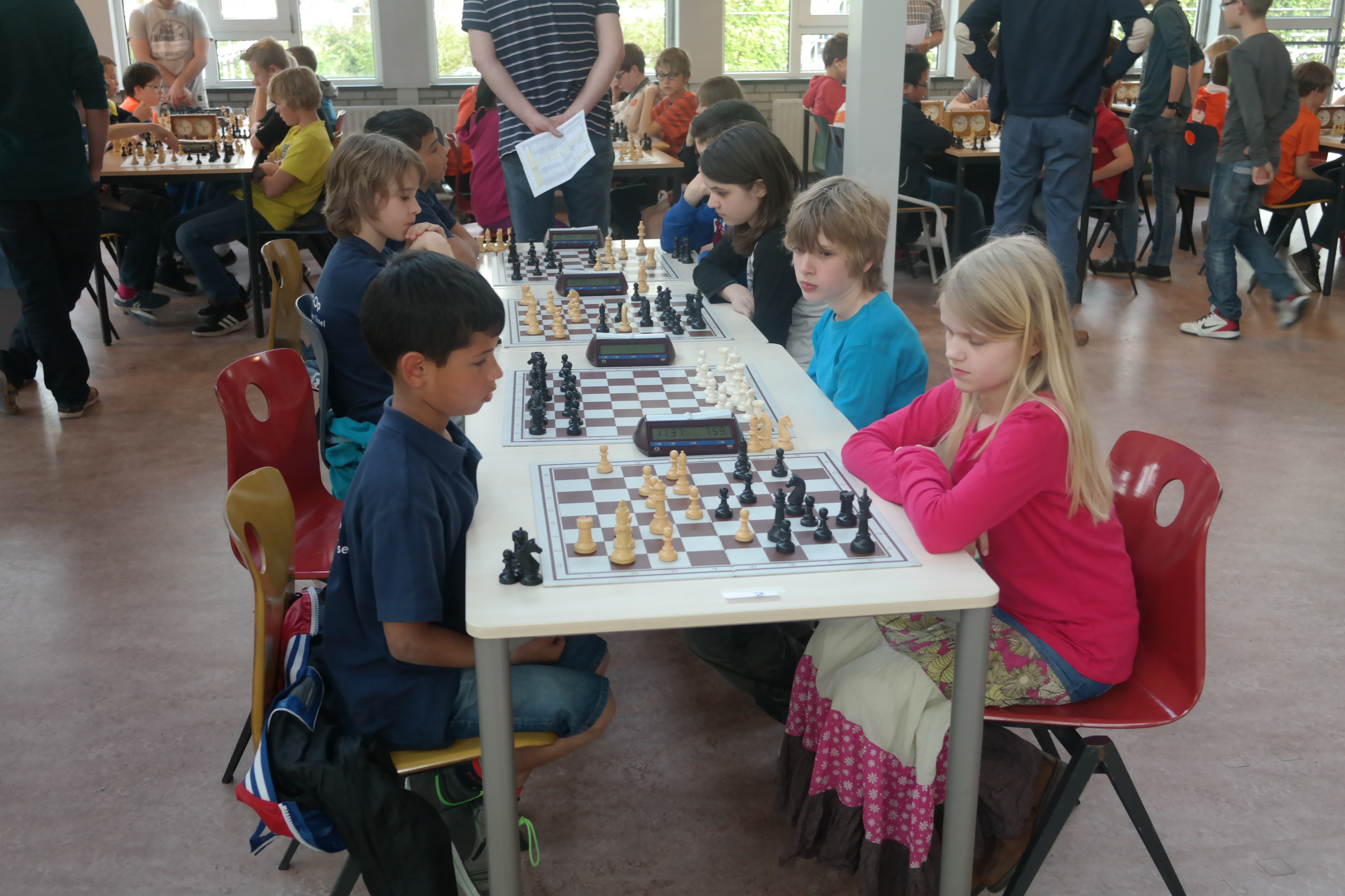 Het eerste team had het zwaar in poule 2, maar door een zeer spannende overwinning van Kim op David Avedissian van Messemaker (beide hadden minder dan 10 seconden, maar Kim zette net iets sneller met haar koning dan David met zijn paard) legde ze toch mooi beslag op de derde plek.