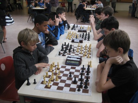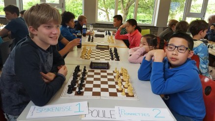 Na overleg ging Diego ervoor ! Het ging goed want na twee minuten was het afgelopen. Zijn tegenstander maakte een fout wat hem de overwinning opleverde. Door deze overwinning pakten de Pionnetjes 1 de tweede plaats in poule 2.