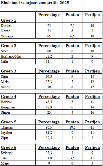 Hieronder de eindstand van de competitie en ladder van de voorafgaande periode: de competitie en ladder van het voorjaar van 2025.